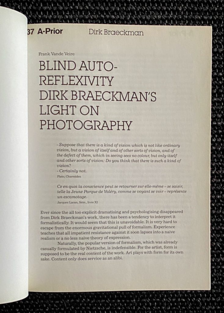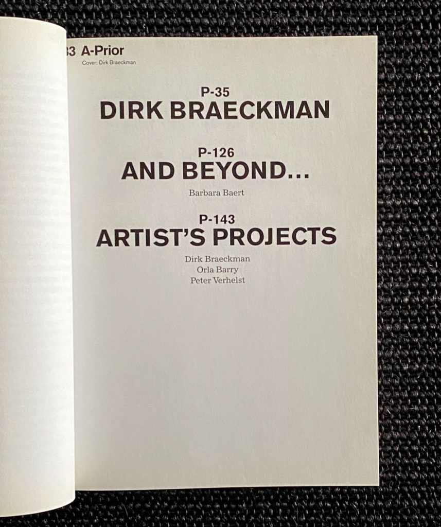 A quasi monographic issue with 23 full page color and 65 full pages black and white photographs by Dirk Braeckman .