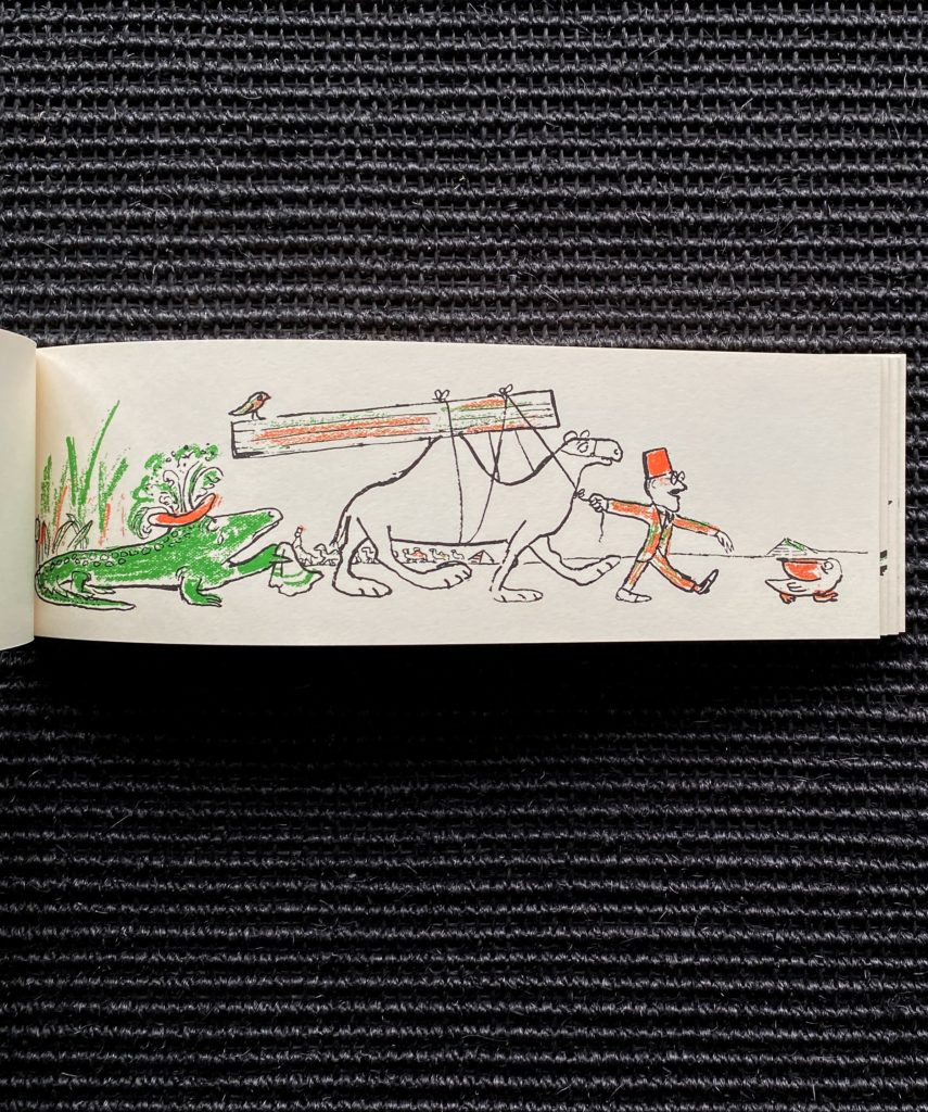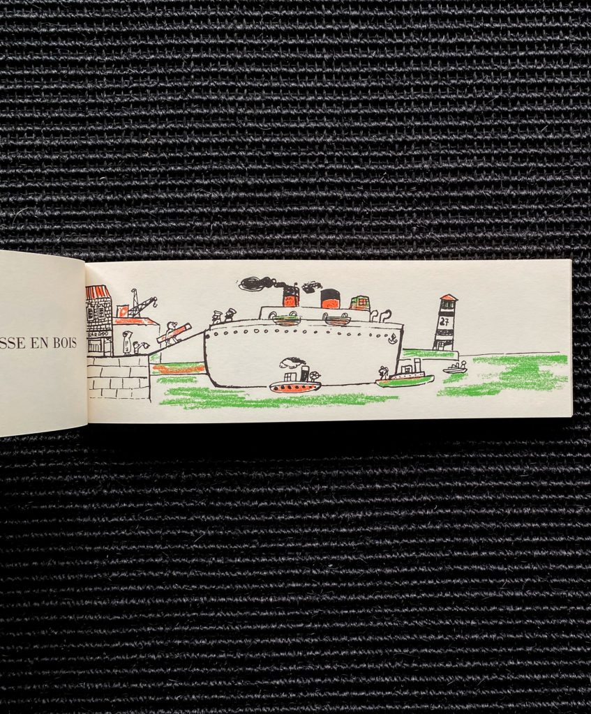 Initialement publié par Robert Delpire en 1953 dans sa revue « Neuf », ce petit récit illustré sera publié en livre une première fois en 1956. Une 2ème édition, avec un emboîtage un peu différent, paraîtra an 1967.