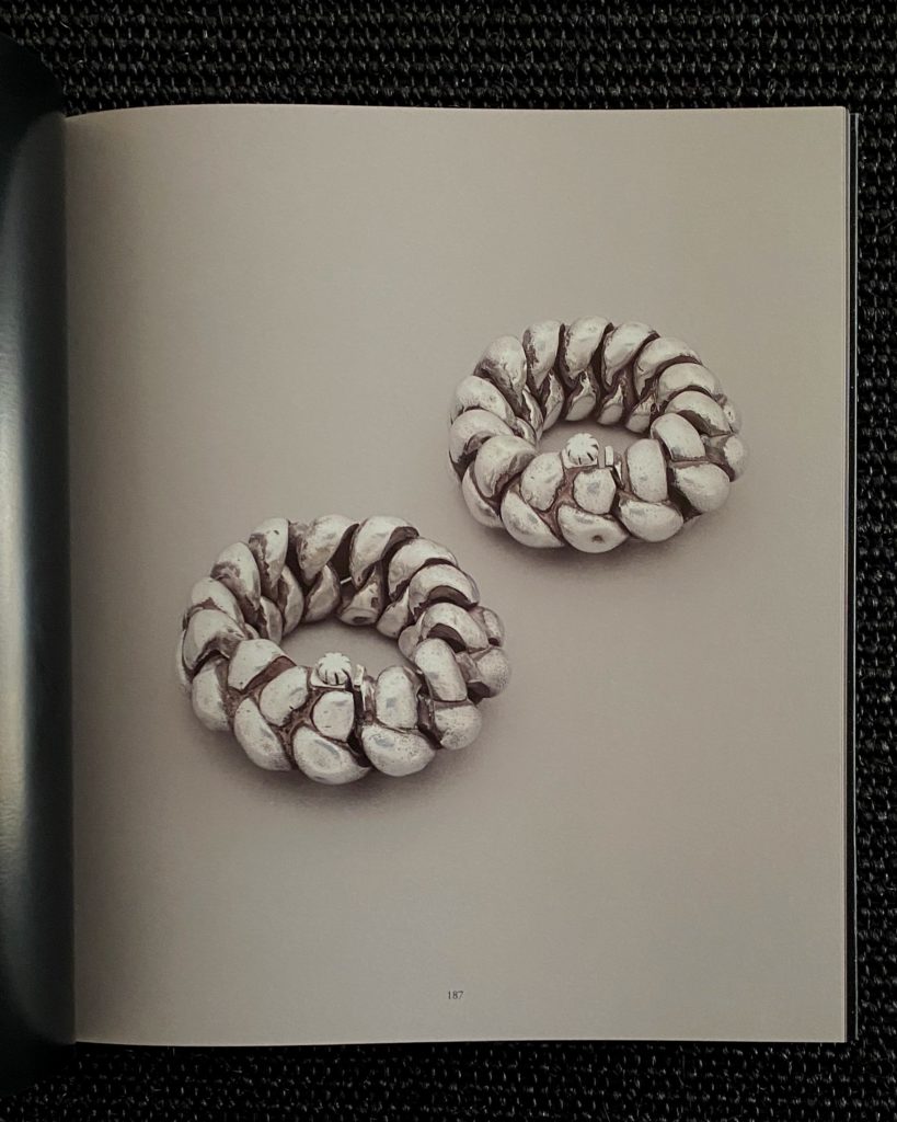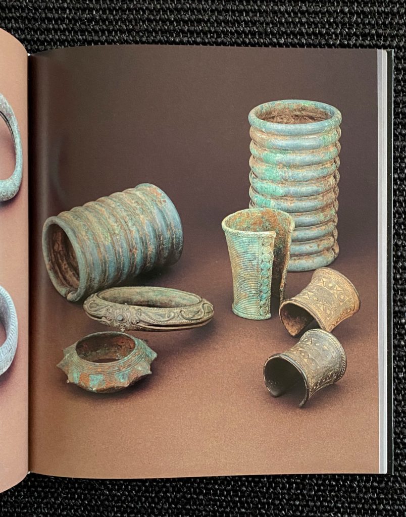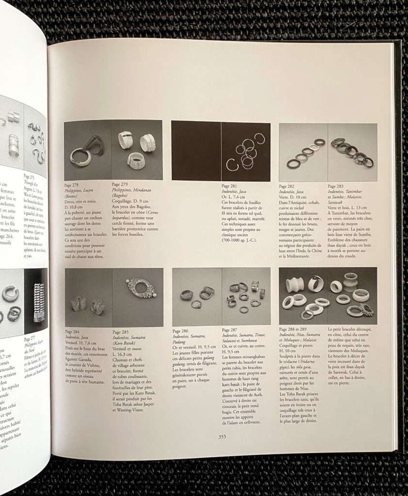 329 p. avec plus de 300 illustrations couleur en pleine page ( 1200 bracelets ). Tous les bracelets sont repris à la fin du livre en petites photos noir et blanc avec légende descriptive, dimensions et origine. En annexe: des cartes géographiques et un glossaire.