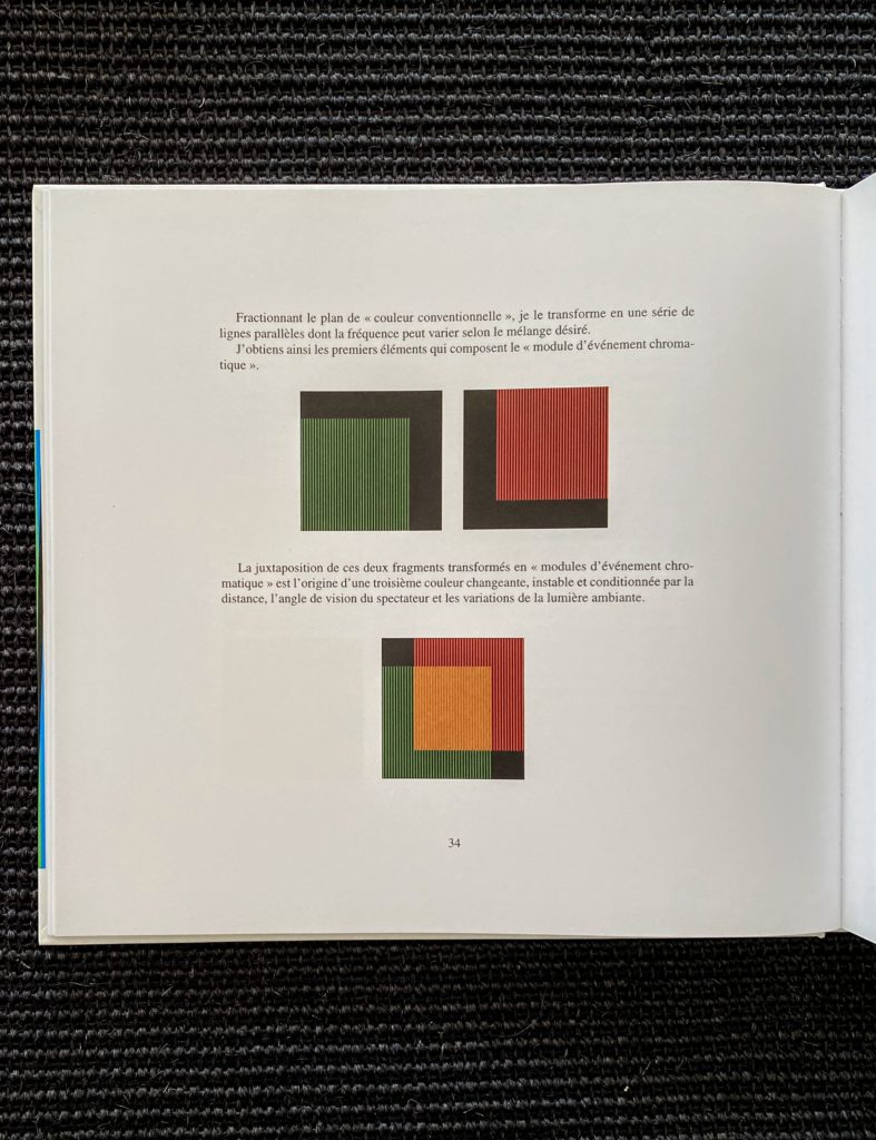 Cruz-Diez combine différentes techniques et associe de nombreux matériaux : aluminium, fer, acier, papier, carton, plexiglas etc…