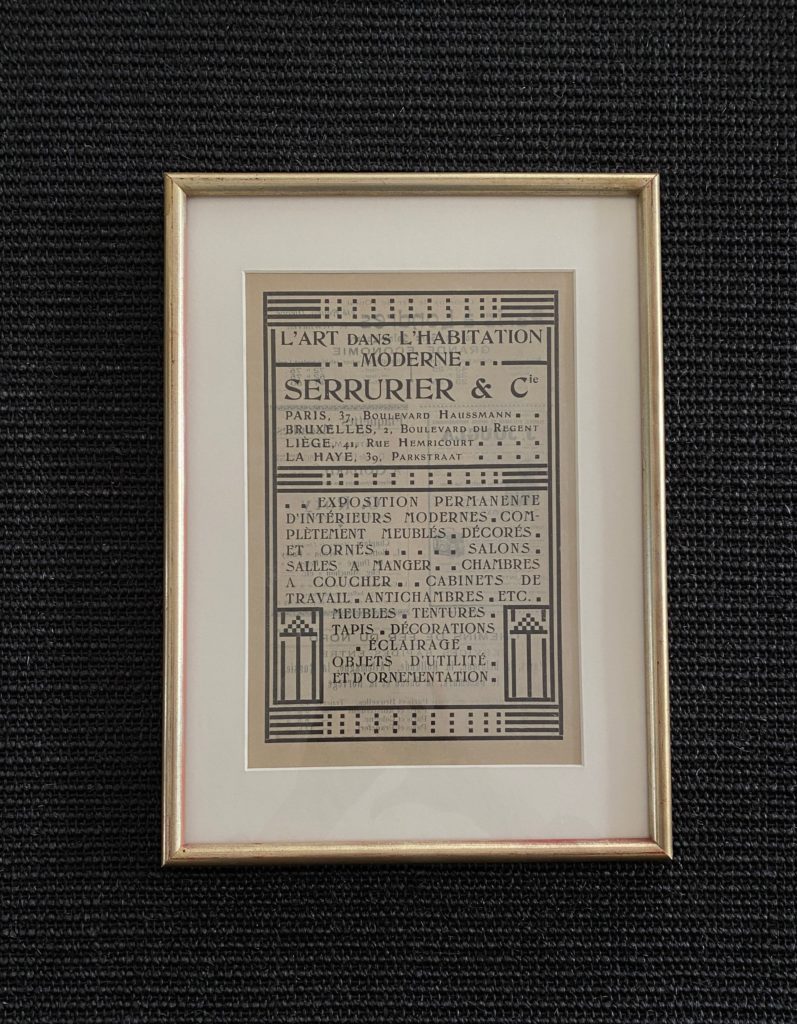 « Exposition permanente d’intérieurs modernes. ( … ) Meubles. Tentures. Tapis. Eclairage.Objets d’utilité et d’ornement. »