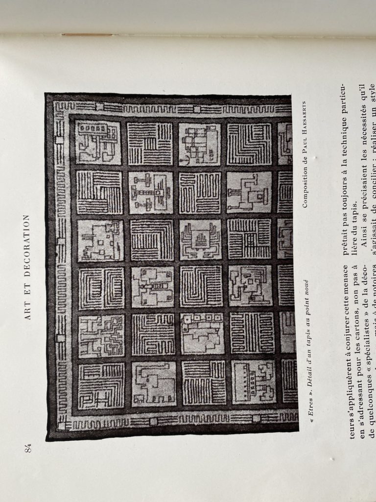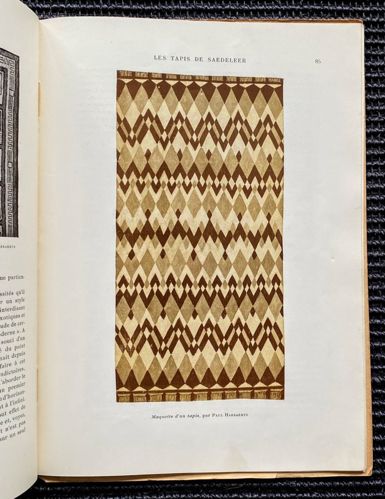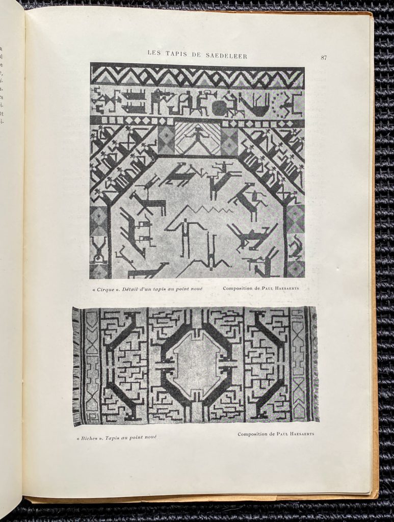 Luc et Paul Haesaerts, qui dirigeaient le Studio De Saedeleer, s’adressaient, pour les motifs des tapis, non à des spécialistes de la décoration moderne mais à des artistes ( belges et autres ) comme ( e.a. ) : Vlaminck, Chagall, André Lhote, Zadkine, Masereel, Tytgat, Oscar Jespers, Valerius De Saedeleer, Frits Van Den Berghe etc….
