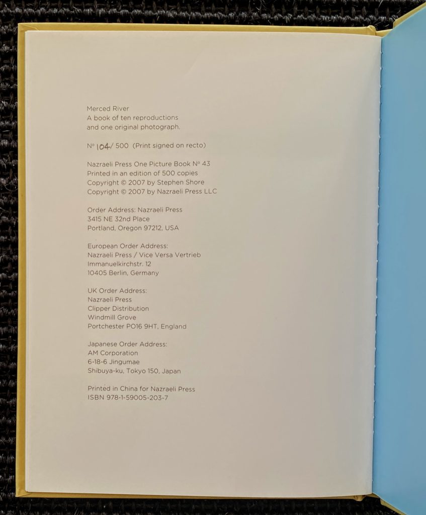 Stephen Shore presents photographs made in seemingly disparate locations, ranging from mountains to forest to beach. Actually all photographs are part of one whole which is the original print: Merced River, Yosemite National Park, California taken by Shore in 1979.